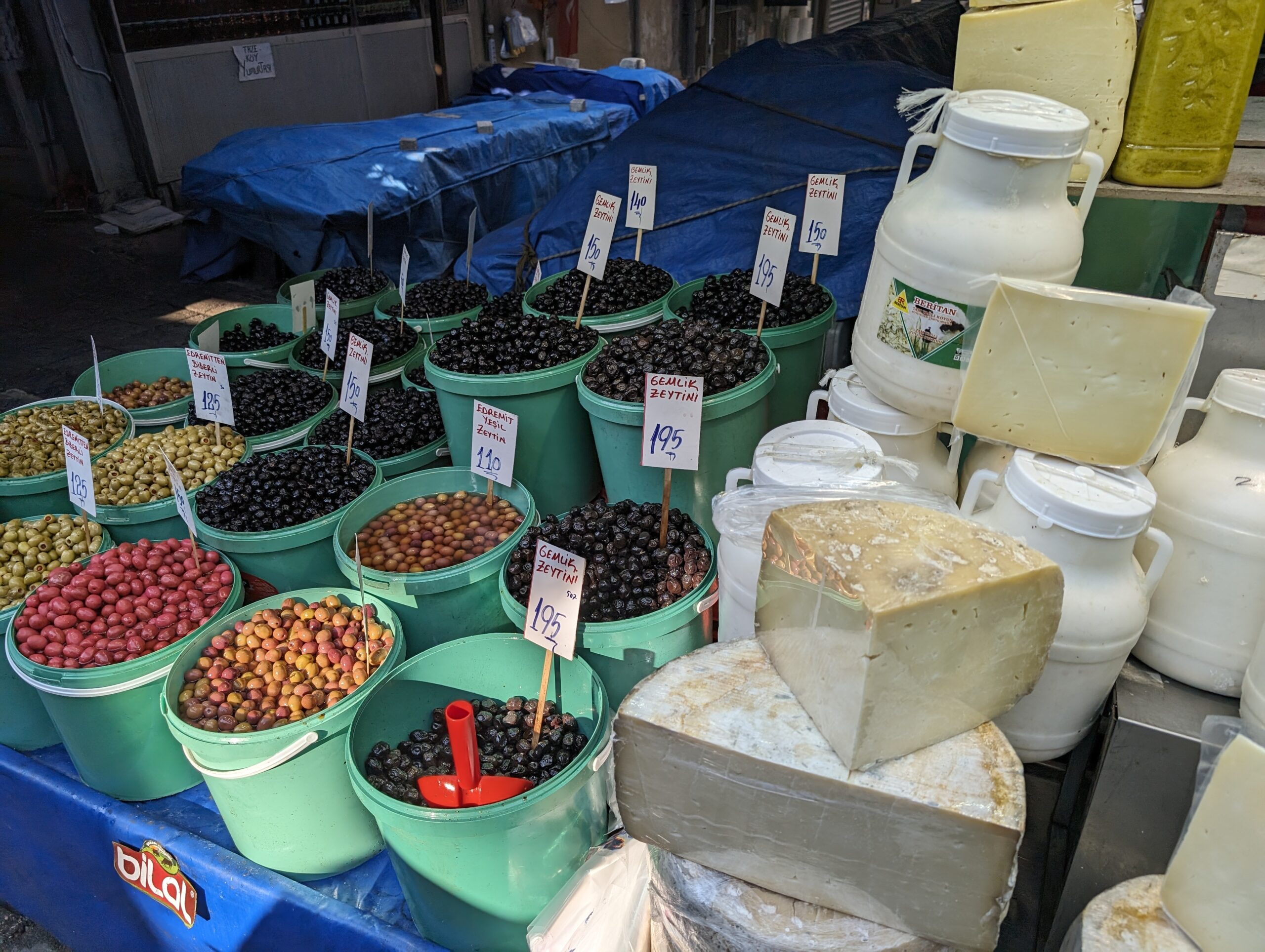 ↑トルコにこんなにたくさんの種類のオリーブがあるだなんて知らなかった。チーズも美味しそう。