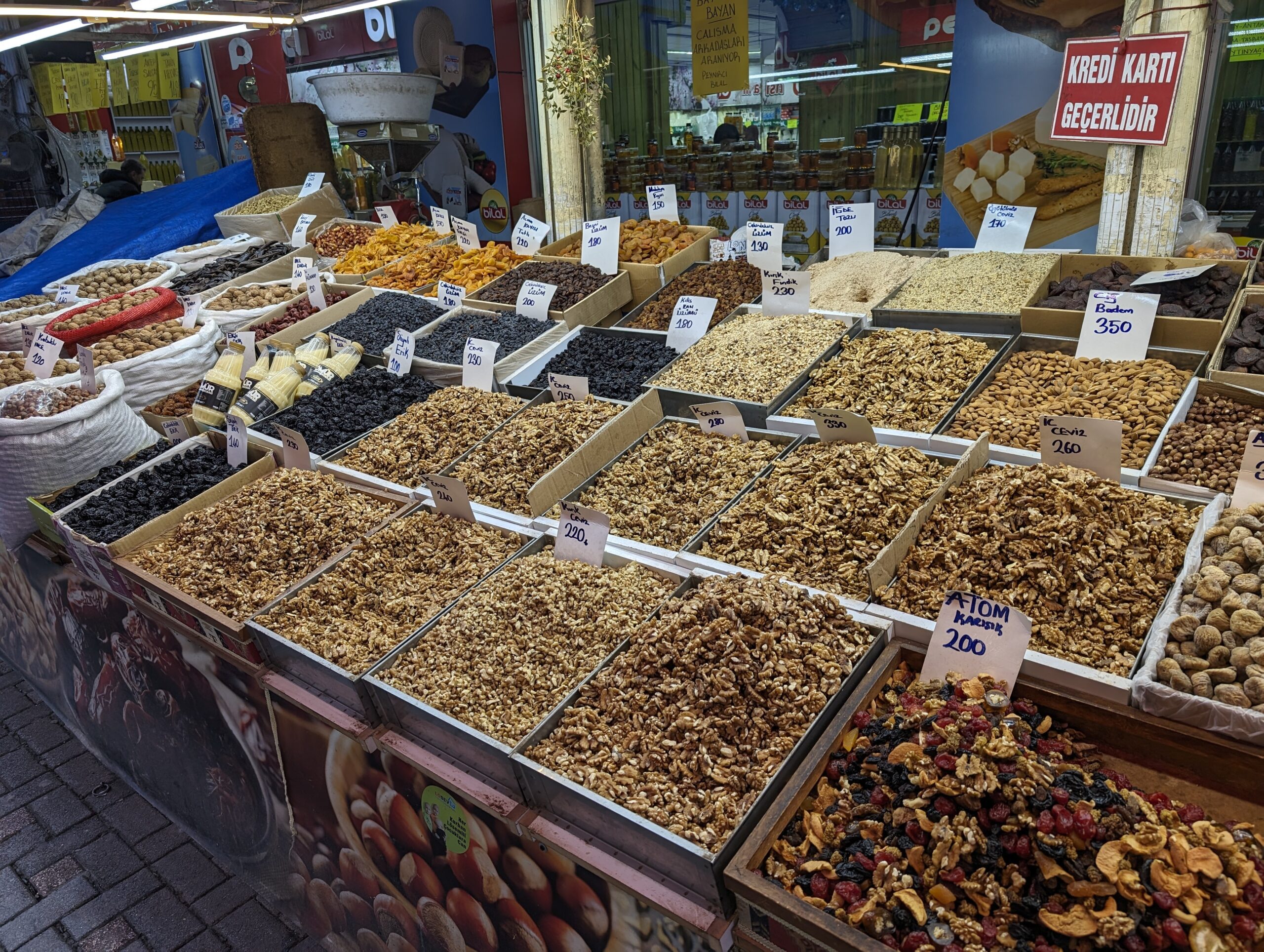↑トルコはドライフルーツやナッツ類も種類豊富ですが値段的にはアマゾンや楽天で買うのとあまり変わらないかなー(品質はさておき)。