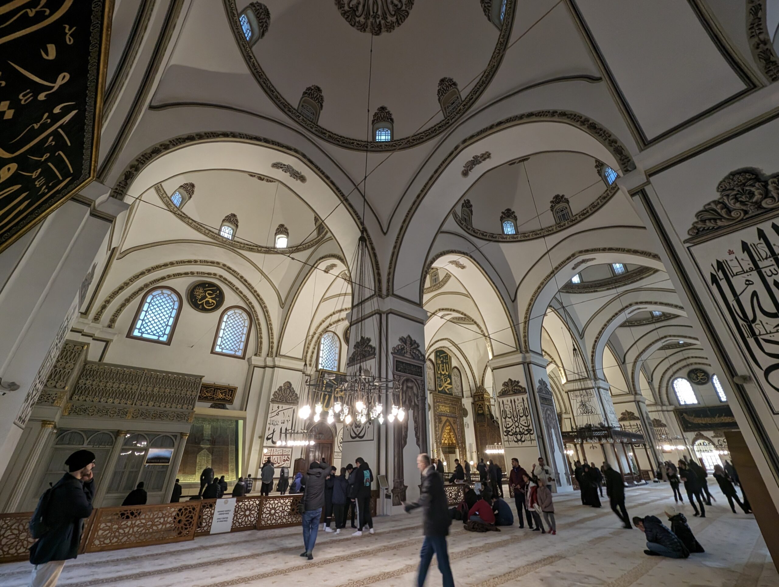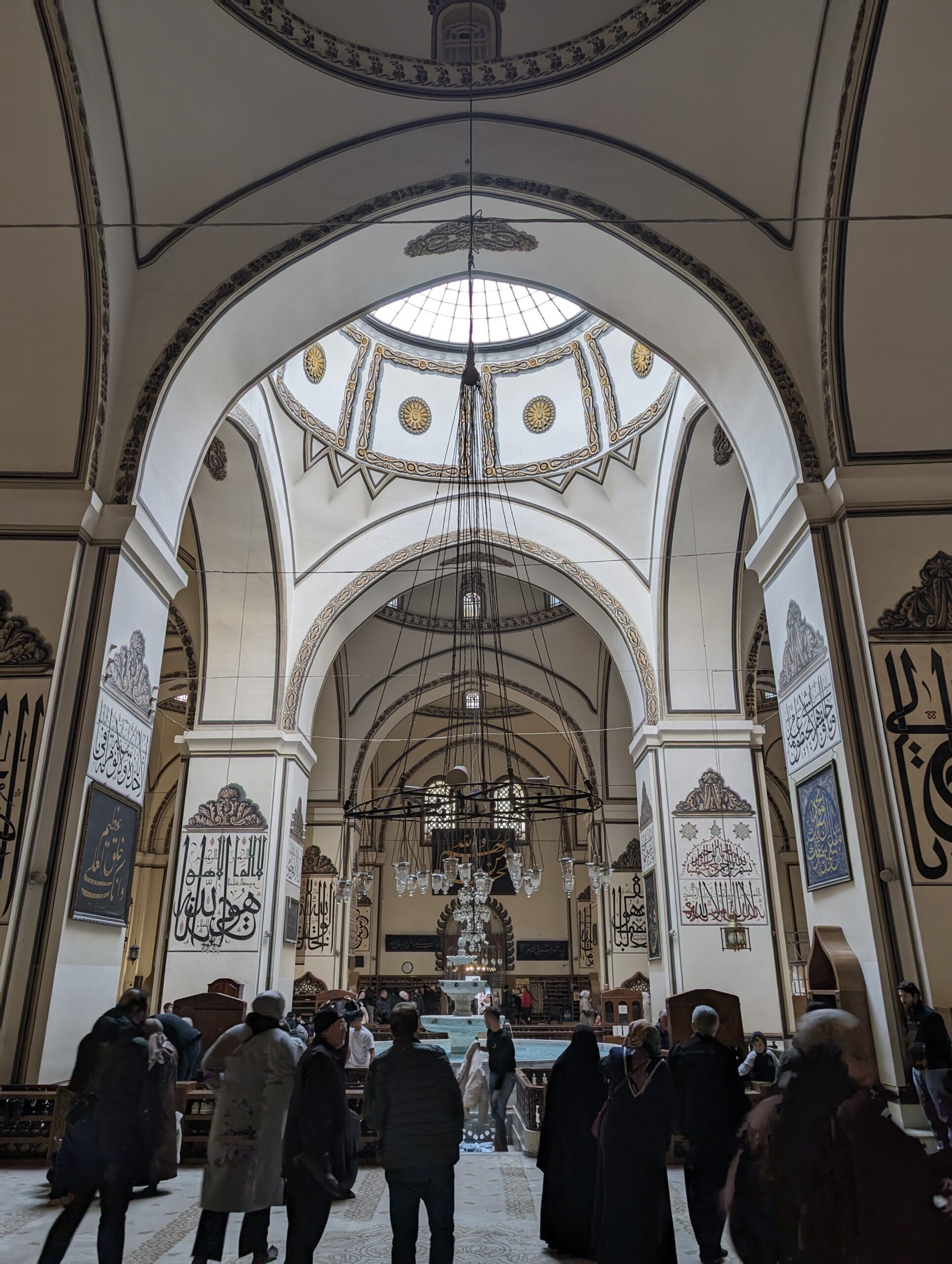 ↑ウル・ジャーミィ内は予想していたよりも広くてカリグラフィーがたくさん。信仰の場ですがみなさんスマホでばちばち写真撮っていたのでトモ先生も。